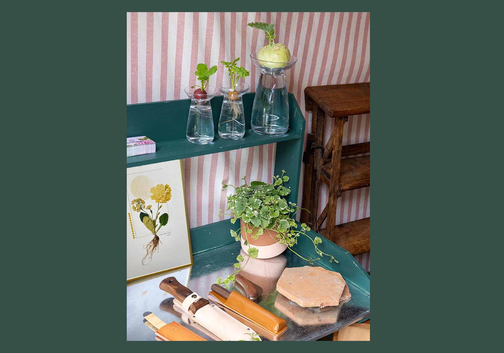 Founder Eléonore d’Hauteville carefully seeks out or creates products that combine practicality with beauty. Secateurs and garden knives, elegant baskets and watering cans, vases for cuttings and for growing plants in water, Eléonore has tried them all.